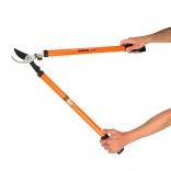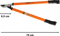 Zahvaljujoč ergonomskim gumijastim ročajem orodje zanesljivo sede v roki in zmanjšuje utrujenost pri daljšem delu. Skupna dolžina 750 mm omogoča doseg tudi do težje dostopnih mest in zagotavlja boljši nadzor nad rezom.