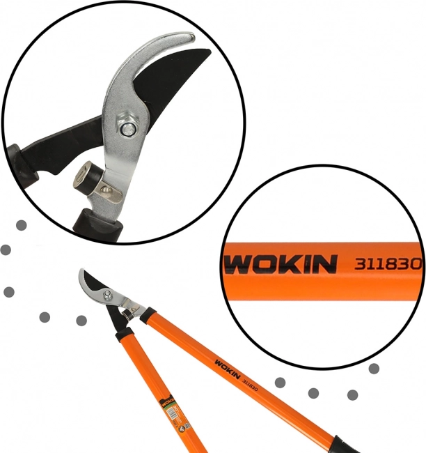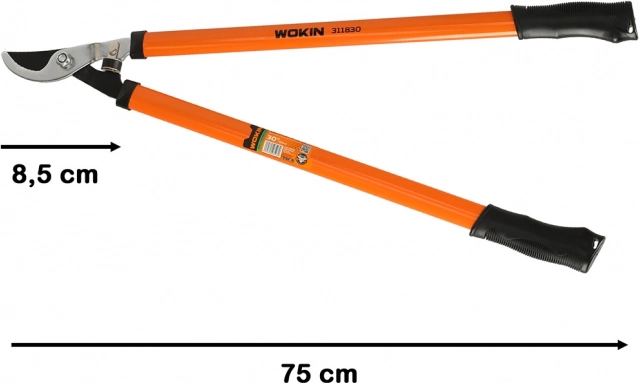 Zmogljive dvoročne škarje WOKIN z dolžino 750 mm olajšajo rezanje vej in grmovja. Ponašajo se z ostrim jeklenim rezilom, dolgimi ročaji za boljši vzvod in ergonomskimi gumijastimi oprijemi za udobno in varno delo na vrtu.