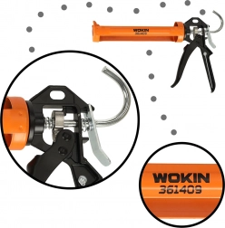 Zanesljiva ročna pištola za kartuše WOKIN je idealna za montažo in zatesnjevanje oken ter vrat, fugiranje predelnih sten, dela pri toplotni izolaciji sten in streh ter zapolnjevanje dilatacijskih rež. Vrtljivo ohišje 360° olajša dostop do težje dosegljivih mest in zagotavlja čisto, enakomerno vodenje vrvice tesnila.