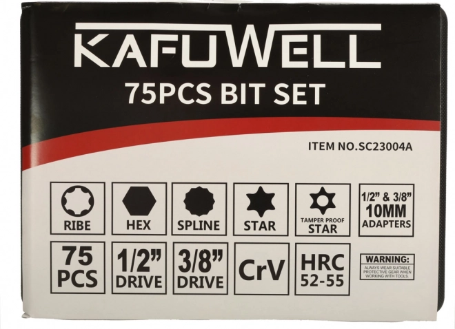 Univerzalni komplet nastavkov KAFUWELL s 75 deli združuje zmogljivost in natančnost za delavnico in dom. Trpežni nastavki iz zlitine CrV, kratke in dolge izvedbe, tipi HEX, RIBE, SPLINE, TORX in TORX Security ter dodatno 3 redukcije 1/2" in 3/8". Pregleden praktičen transportni kovček ohranja red in olajša prenašanje.