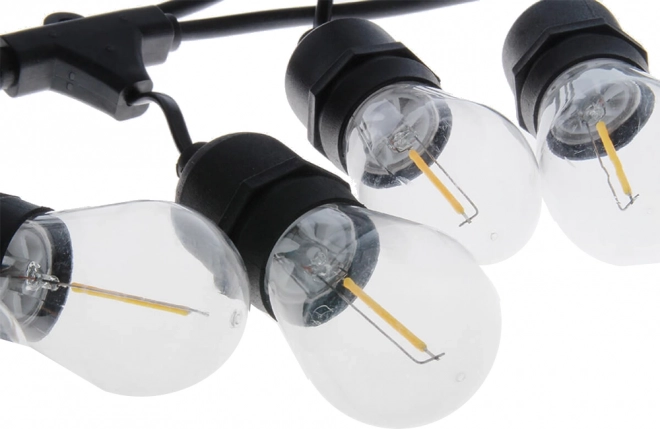 Dodajte svojemu zunanjemu prostoru prijetno toplo svetlobo. Ta 10-metrska girlanda z 10 zamenljivimi LED žarnicami E27 prinaša prijetno osvetlitev v toplo beli barvi, ki poudari vzdušje poletnih večerov, vrtnih zabav in romantičnih trenutkov na balkonu.