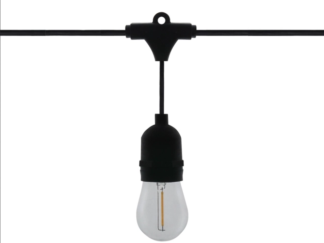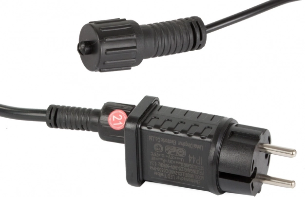 Zatesnjen vtikač in tesnjene grla ščitijo pred vlago in dežjem. Girlanda je pripravljena za celoletno zunanjo uporabo.