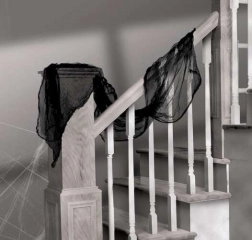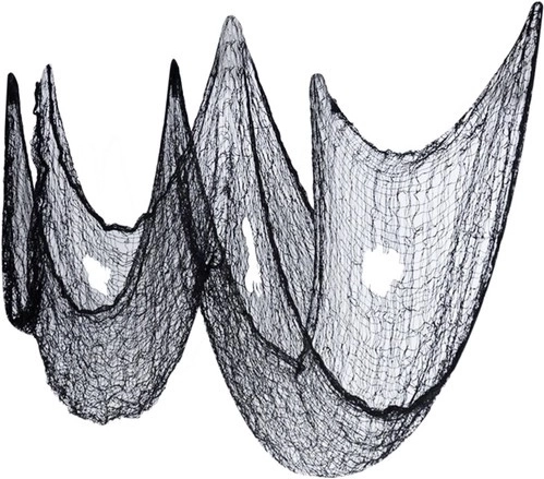 Fina mrežasta struktura in namerni raztrganinski odseki ustvarijo avtentičen videz stare pajčevine – idealno za noč čarovnic in scenske dekoracije.