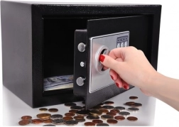 Programabilna 3–8-mestna koda za hitro odpiranje ter nujni mehanski ključ, ko je to potrebno. Po treh napačnih poskusih se sef za 30 s blokira in o tem obvesti z lučko in zvokom.