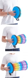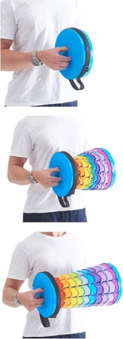 Razpiranje je intuitivno: primite oba ročaja, izvlecite in zasukajte v levo; za zlaganje zasukajte v desno in nežno stisnite. Nastavljiva višina v 10 korakih (približno po 6 cm) omogoča prilagoditev otrokom in odraslim. Praktičen naramni pas olajša prenašanje, barvit dizajn pa prepriča na prvi pogled.