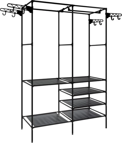 Šest polic, ena obešalna palica in osem stranskih kljuk sprejmejo oblačila, obutev, škatle in dodatke. Odprta zasnova zagotavlja hiter pregled in enostaven dostop.