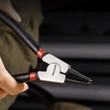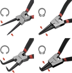 Praktičen set za servis, delavnico in domača popravila. S segerjevimi kleščami boste preprosto in varno razprli ali stisnili varnostne obroče tudi na težko dostopnih mestih. Dolgi, protizdrsni ročaji zagotavljajo zanesljiv oprijem in natančno vodenje orodja.