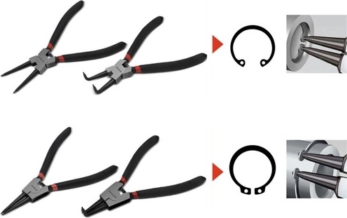 Dva ravna in dva ukrivljena orodja pokrijejo večino uporab z notranjimi in zunanjimi varnostnimi obroči.