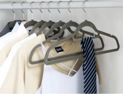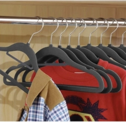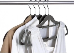 Vsak obešalnik je prekrit z nežnim žametnim materialom, ki preprečuje drsenje oblačil.