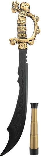 Ta piratski komplet bo vsakemu malemu pustolovcu dodal pogum in domišljijo. Glavni element je lahko in varno plastično rezilo dolžine 58 cm z okrasnim ročajem, ki odlično sede v roko. Skupaj z dodatki ustvari avtentičen piratski videz za igre vlog, kostume in tematske dogodke.