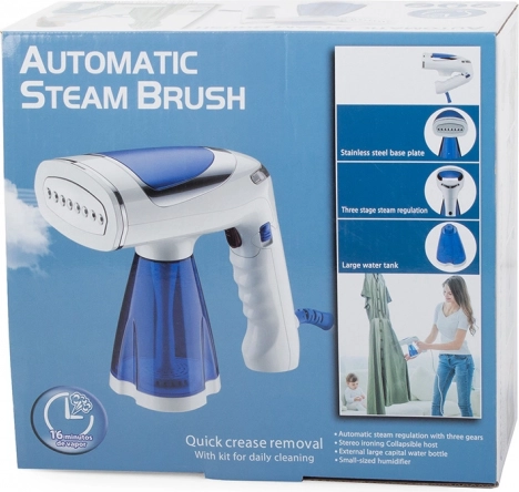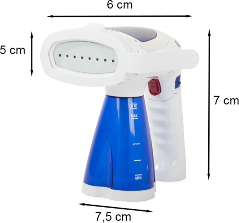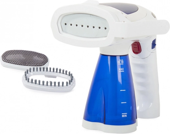 Odstranljiv 200-ml rezervoar za vodo, udoben ergonomski ročaj ter možnost vertikalnega in horizontalnega parjenja ga naredijo za idealnega pomočnika doma in na poti. Priloženi so praktični dodatki: nastavki za tkanine, čistilni blazinici, sponka za hlače, adapter za steklenico in merilna posodica.