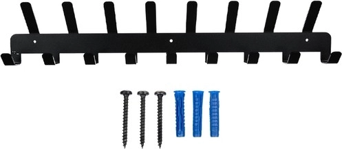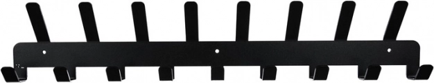 Uredite plašče, jakne, torbe in dodatke pregledno na enem mestu. Ta stenska obešalna letva ponuja 9 spodnjih in 8 daljših zgornjih kljuk, zato nudi dovolj prostora za vso družino. Minimalističen videz in črna izvedba se odlično podata tako v moderne kot klasične interierje.