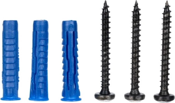 V paketu so mozniki in vijaki – izvrtajte 5 mm luknje in obešalno letvo trdno pritrdite na steno.