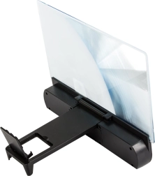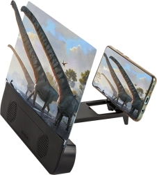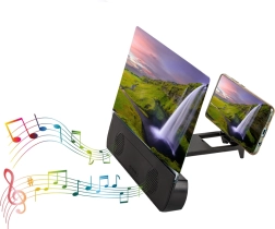 Vgrajen Bluetooth zvočnik poenostavlja spremljanje multimedije, saj kombinira povečavo slike z ojačitvijo zvoka. Idealen za uporabo doma in na poti.
