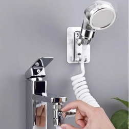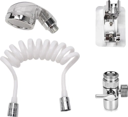 - Vključuje cev, priključeno na ročaj prhe, ki jo je mogoče preprosto namestiti na steno.