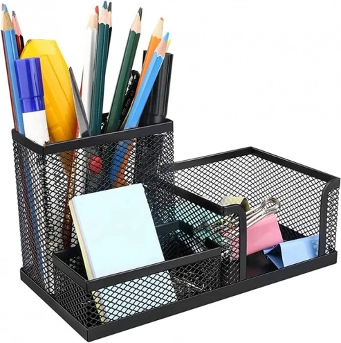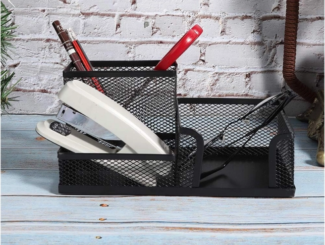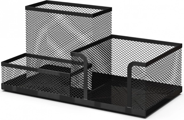 Črna mrežna namizna organizator s 3 predelki