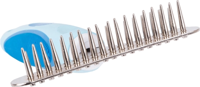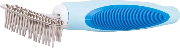 Trimer za hišne ljubljenčke je neprimerljivo učinkovitejši od običajnih krtač ali glavnikov. Njegovi vzdržljivi zobje iz nerjavnega jekla so zasnovani za učinkovito odstranjevanje odmrle podlanke brez striženja dlake. Ročaj, prevlečen z gumo, nudi udoben oprijem in preprečuje drsenje iz roke.