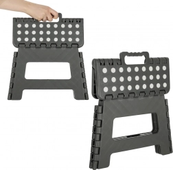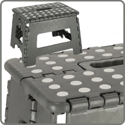 Ta kompaktni zložljiv stolček je odličen pomočnik povsod, kjer potrebujete hitro stabilno oporo ali nizko sedenje. Lahka in trpežna plastična konstrukcija se zlahka zloži in razpre, nedrseča zgornja površina in čvrsta osnova pa zagotavljata varno uporabo.