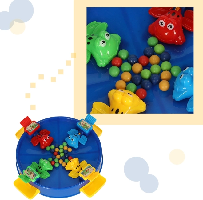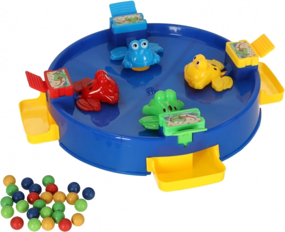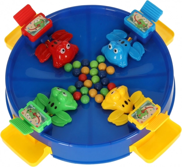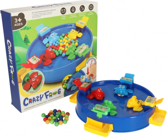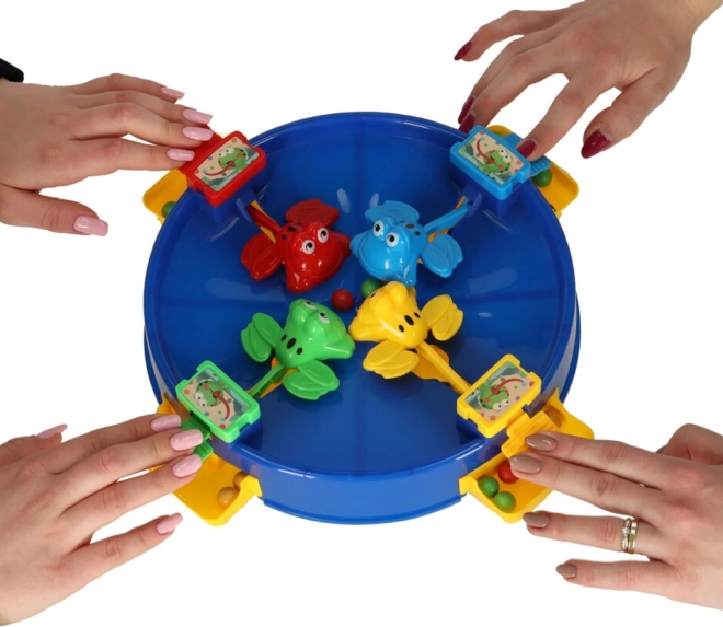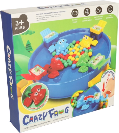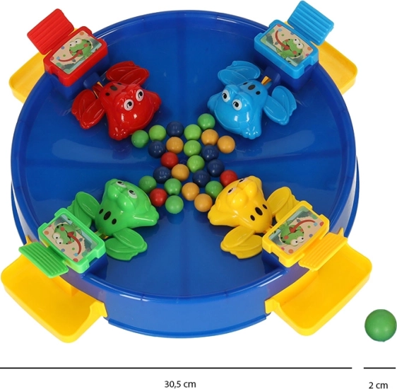 Doživite edinstveno zabavo s skakajočimi žabicami, kjer je vključena celotna družina. Ta igra je namenjena za 2 do 4 igralce, ki tekmujejo v lovljenju čim več krogljic s pomočjo barvitih žabic razporejenih okoli jezerčka. Zabava začne, ko stresete krogljice v sredino igre, in mehanika pogosta udeležence v igro.