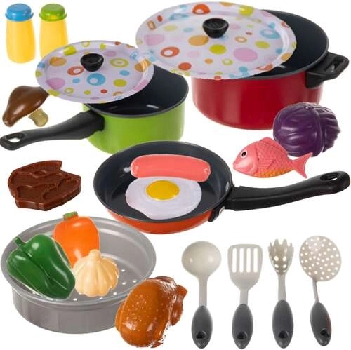 Ta edinstven komplet igrač za kuhinjo omogoča vsakemu malemu kuharju, da razširi svoja krila in odpre svojo lastno restavracijo. Sestavljen je iz 23 elementov, s katerimi bo vaš malček sam pripravil okusne jedi. Komplet vsebuje med drugim: lonce, sestavine za večerjo in dodatke, potrebne v vsaki kuhinji. Komplet bo popoln dodatek za vsako igralno kuhinjo.