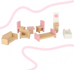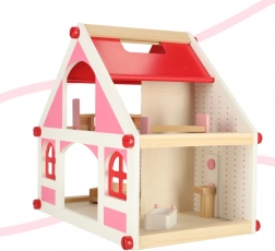V paketu je bogat komplet lesenega pohištva v nežnih rožnatih odtenkih, zato lahko takoj opremite dnevno sobo, kopalnico in spalnico. Zabava se začne že pri skupnem sestavljanju hišice – montaža je preprosta in vsi potrebni elementi so priloženi.