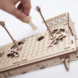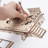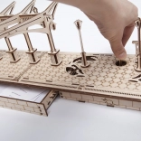 Mehanska 3D sestavljanka UGEARS združuje tradicionalen material in pametno mehaniko. Po sestavljanju dobite podroben model železniškega perona z stopniščem, klopjo, uro in varnostno ograjo. Zahvaljujoč natančnemu izrezovanju se deli natančno prilegajo in model se premika gladko.