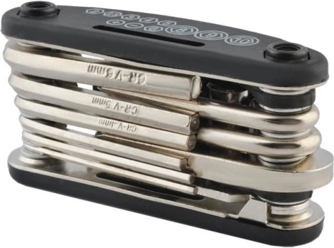 Kompakten komplet ključev za kolo 16v1 je nepogrešljivo orodje vsakega kolesarja. Celoten set je zložen v obliki žepnega noža. Zaradi majhnih mer ga lahko vedno nosite s seboj v torbi na kolesu, nahrbtniku ali v žepu. Set vsebuje najnujnejše orodje za hitra in samostojna popravila kolesa. S tem kompletom se lahko brez skrbi odpravite na dolge poti.