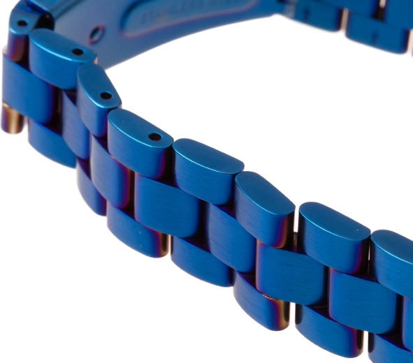 Nadgradite svojo zapestnico z elegantnim kovinskim paščkom v izrazito modri barvi. Kakovostno nerjaveče jeklo s členkasto konstrukcijo zagotavlja vzdržljivost, udobje in reprezentativen videz, ki je primeren tako za delo kot prosti čas.