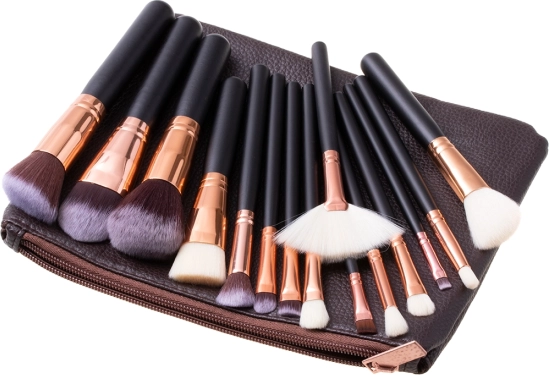 Set vsebuje 15 čopičev različnih oblik in velikosti, idealnih za različne tehnike nanašanja ličil.