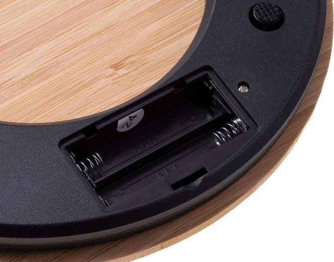 Ta okolju prijazna tehtnica prinaša pridih narave v vašo kuhinjo zahvaljujoč gladki bambusovi površini v kombinaciji z vzdržljivo plastično osnovo za dolgoročno zanesljivost. Za napajanje potrebuje dve bateriji AAA.