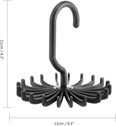 Premišljeno zasnovan obešalnik sprejme 20 kravat ali pasov. Pomaga prihraniti veliko prostora. Vrti se za 360 stopinj.