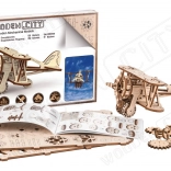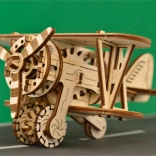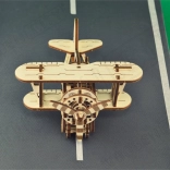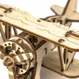 Lesena mehanska sestavljanka v obliki dvokrilnika ponuja edinstveno obliko in presenetljive podrobnosti. Z modelarsko natančnostjo se boste podali v zračna doživetja ob boku pionirjev letalstva, kot je Antoine de Saint-Exupéry. Ta model je poganjan z gumijastimi trakovi z nastavljivo pospeševanjem, ki zavrti propeler in omogoči letalu, da pospeši na ravni površini.
