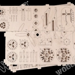Sestavljanka je narejena iz kakovostne brestove vezane plošče in se sestavi brez potrebe po uporabi lepila ali orodja. Dimenzije sestavljenega modela znašajo približno 16,1 x 14 x 8,8 cm. Postala bo odlično darilo za ljubitelje letal in zagotavlja ure zabave ter učenja mehanskih prenosov in zobnikov.