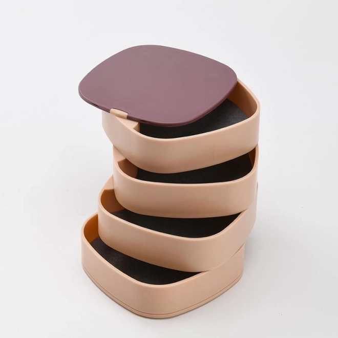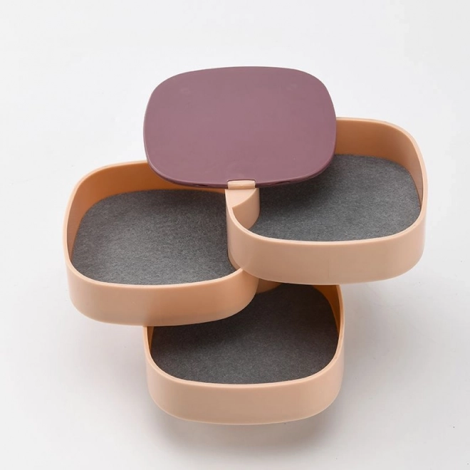 Vsako raven lahko zavrtite za 360°, kar omogoča enostaven dostop do posameznih predalov. Mehka obloga ščiti nakit pred praskami in zapletanjem. Zaradi visoke funkcionalnosti in privlačnega videza bo to stojalo zagotovo našlo svoje mesto v vašem domu.