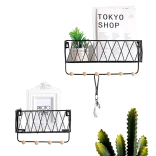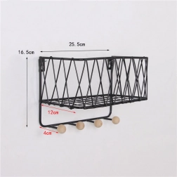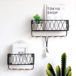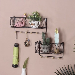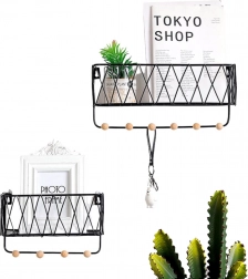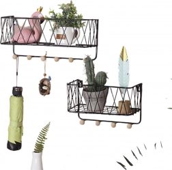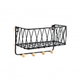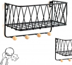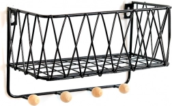 Sodobna žičnata polica združuje dizajn in funkcionalnost. Zgornja odlagalna površina sprejme dekoracije in manjše predmete, medtem ko spodnje kljukice držijo ključe, rute ali lahke torbe pregledno obešene. Črna izvedba se zlahka kombinira z večino interierjev in deluje čisto in brezčasno.