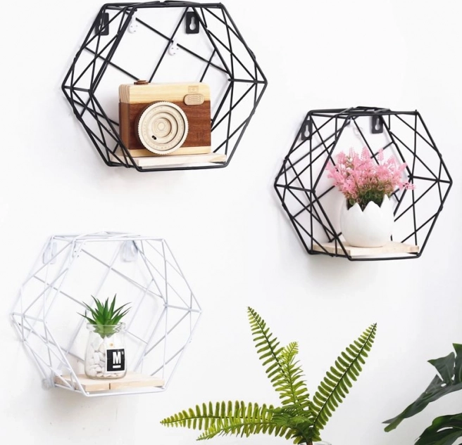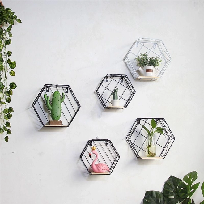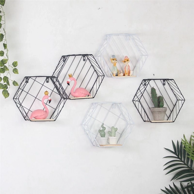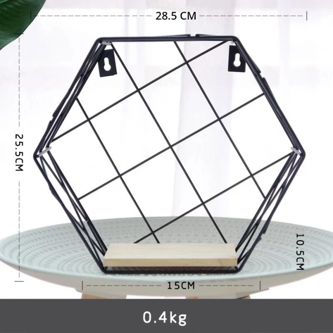 Šesterokotna dekorativna polica, slog LOFT - črna II