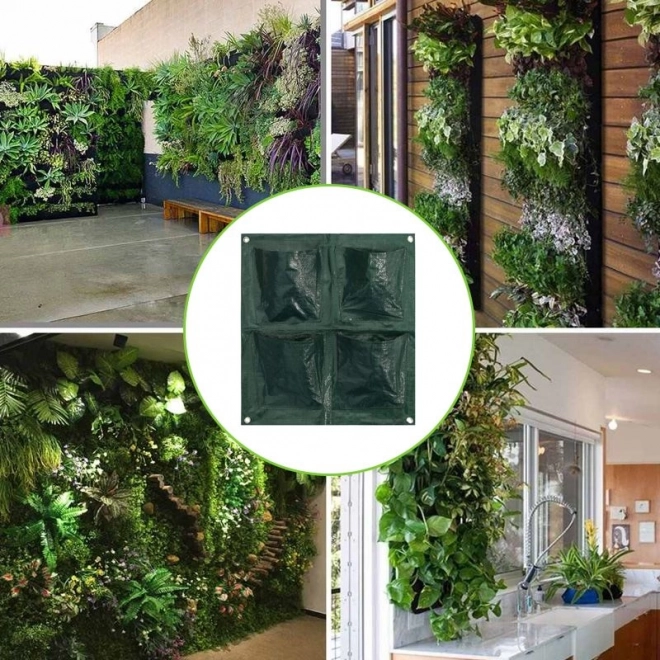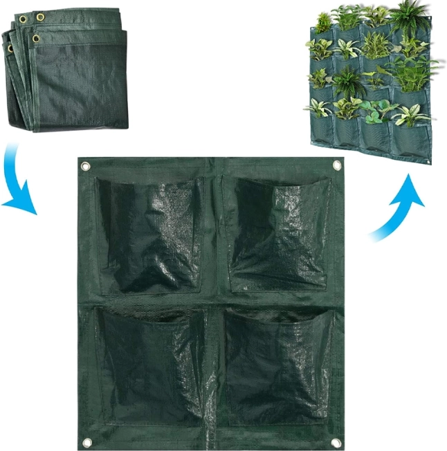 Stenska sadilna vreča omogoča sajenje v vsak žep. Notranjost žepa zlahka napolnite z zemljo in vanj vstavite rastlino. Namenjena je za okrasne rastline, jagode ali vse vrste zelišč. Z visečo stensko vrečo ustvarite čudovito dekoracijo z živimi rastlinami. Namestite jo lahko kamor koli – na dvorišče, na ograjo, na balkon ali teraso. Z obešanjem vreče na steno prihranite veliko prostora. Celotna vreča je izdelana iz trpežnega materiala, odpornega na vremenske vplive in vlago.