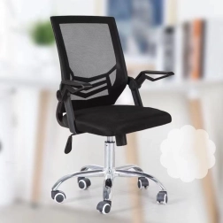 Stilsko in funkcionalno vrtljivo sedalo za pisarno ali domačo delovno sobo združuje zračen mrežast naslon z mehko oblazinjenim sedalom. Kromirano petkrako podnožje s kolesci nudi stabilnost in lahek pomik ob mizi, medtem ko nemoteno nastavljanje višine s plinskim dvigom prilagodi sedenje vaši postavi.