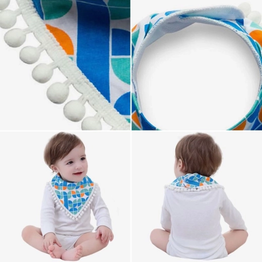 Ljubka otroška ruta s cofki je odličen modni dodatek za vrat, ki dobro deluje tudi kot slinček v času izraščanja zobkov. Udobno zapenjanje s pritiskači otroka ne tišči, na voljo pa je tudi nastavljiv rob.