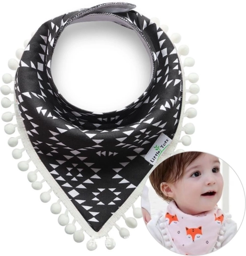Prisrčna otroška ruta z bunkicami je odličen modni dodatek za okoli vratu, ki dobro deluje tudi kot slinček pri izraščanju zob. Udobno zapenjanje s pritiskači ne tišči otroka, na voljo pa je tudi nastavljiv rob.