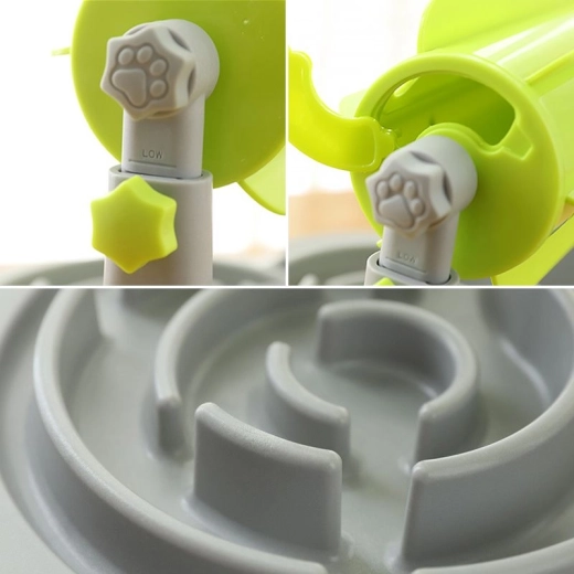 Miska za počasnejše hranjenje in doziranje hrane pomaga preprečevati prebavne težave, ki jih povzroča prehiter vnos hrane. Oblikovana je tako, da podaljša čas hranjenja vašega ljubljenčka in tako prepreči napihnjenost ter druge prebavne težave. Miska ima labirint kanalov, ki vašemu ljubljenčku predstavljajo izziv. Velikost nameščenih briketov ali priboljškov spreminja stopnjo težavnosti. Dozirnik suhe hrane spodbuja apetit in zagotavlja zabavno izkušnjo hranjenja.