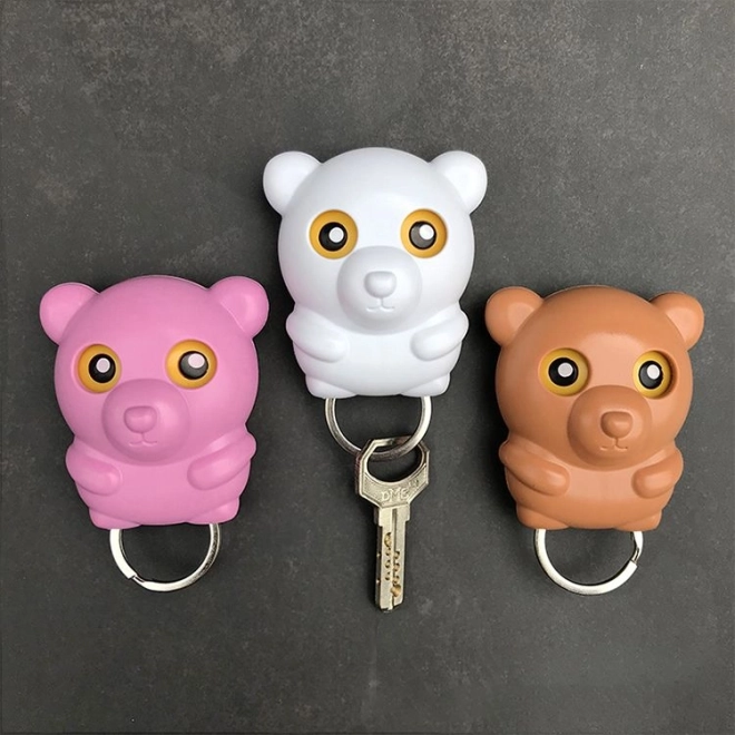 Stenski obešalnik za ključe, idealen za predsobo, kamor boste po prihodu domov lahko obesili ključe. Ko ključe obesite, medvedek odpre oči, da bo nanje pazil. Z namestitvijo obešalnika tik ob izhodu na ključe ne boste nikoli več pozabili – medvedkove odprte oči vas bodo gotovo spomnile.
