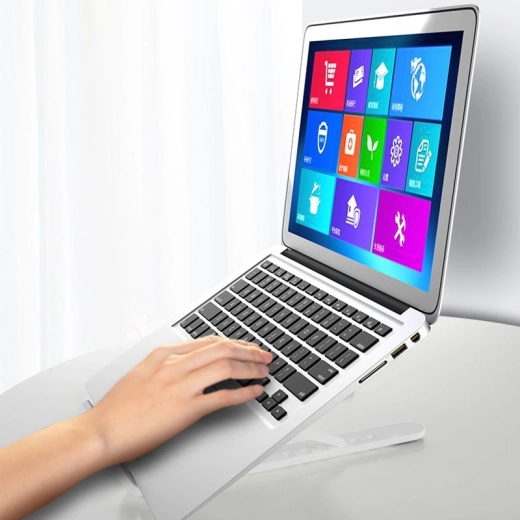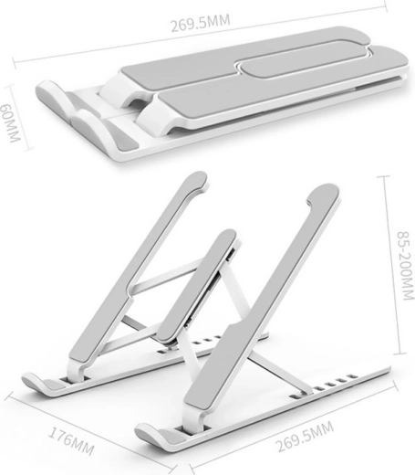 Praktično zložljivo stojalo za vaš prenosnik zagotavlja pravilno ergonomijo pri delu in pomaga ohranjati pravilno držo telesa. Zaradi svoje zasnove podpira učinkovito hlajenje naprave. Idealno za delo s prenosnikom, tablico, pametnim telefonom ali knjigami.