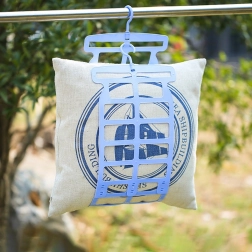 Praktično večnamensko viseče sušilo, ki varno in varčno posuši ter prezrači blazine, pregrinjala in plišaste igrače. Zahvaljujoč kljuki ga preprosto obesite na palico, balkon ali stojalo za sušenje, njegova lahka konstrukcija iz trpežne plastike pa zagotavlja dolgo življenjsko dobo. Po uporabi ga zlahka zložite, zato prihranite prostor. Idealno za hitro sušenje in učinkovito prezračevanje obsežnih tekstilij z dobro cirkulacijo zraka.