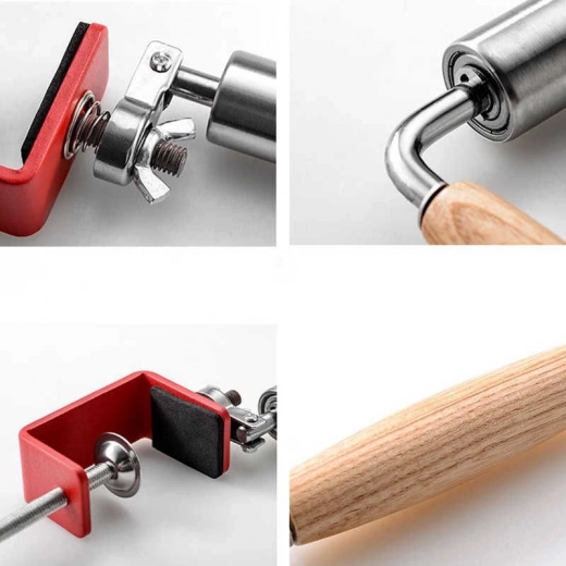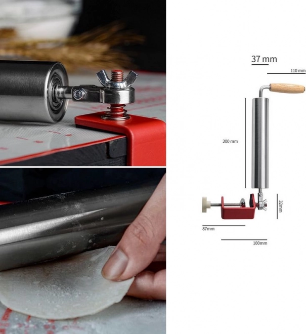 Kompakten dizajn z možnostjo pritrditve na rob mize omogoča, da valjar ostane na mestu, kar omogoča natančno in enakomerno valjanje testa.