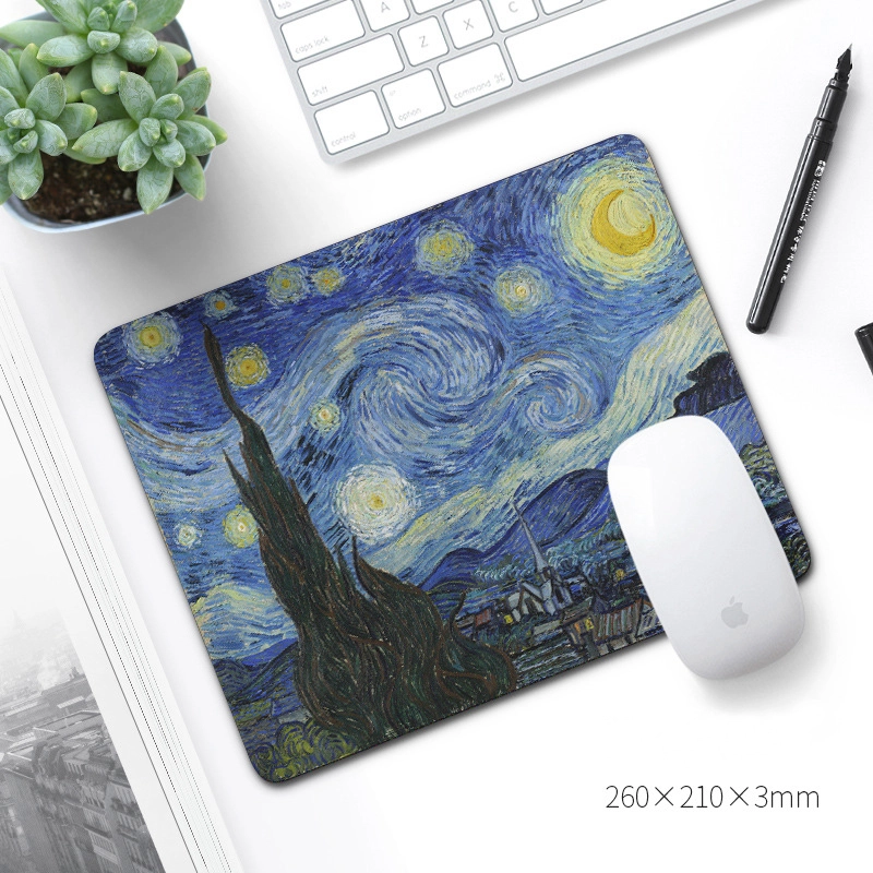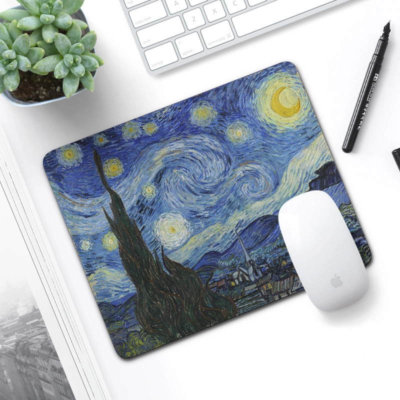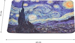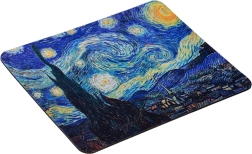 Oplemenitite svojo mizo z ikonično umetnostjo in hkrati pridobite vrhunsko funkcionalnost. Tanek profil in gladka tekstilna površina omogočata natančno vodenje miške, medtem ko gumijasta protizdrsna osnova drži podlogo trdno na mestu tudi pri hitrih gibih. Trpežen barvni tisk motiva Zvezdna noč poživi vsako delovno mesto ali igralni kotiček.