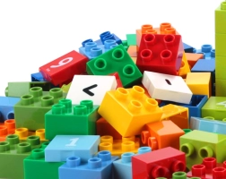 Velike, enostavno spojljive kocke podpirajo fino motoriko in omogočajo gradnjo stolpov, vzorcev ter preprostih modelov po številkah.