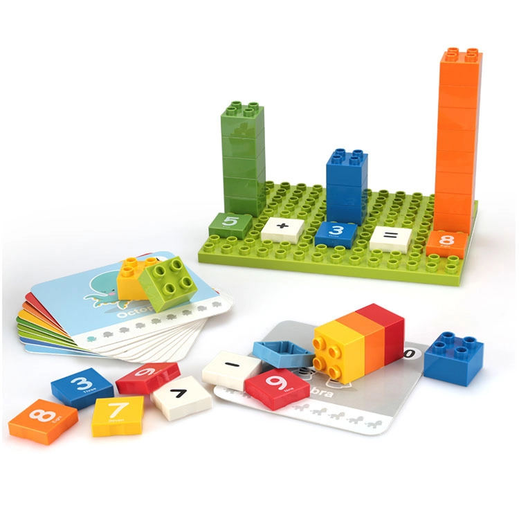 Številski kosi in simboli pomagajo sestavljati preproste primere (npr. 5 + 3 = 8) ter krepijo razumevanje količin.