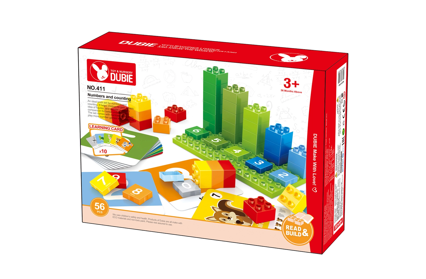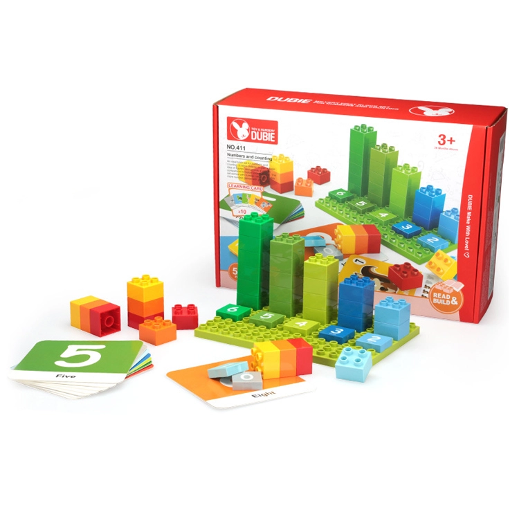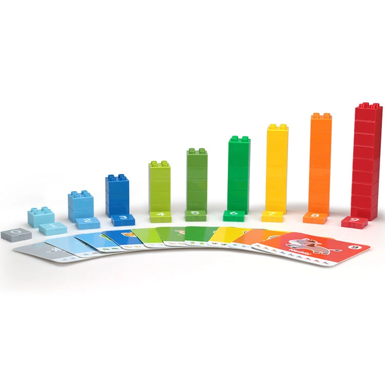 Velike, trpežne kocke so prijetne na dotik in varne za predšolske otroke. Učenje poteka skozi igro – otroci gradijo stolpe po številkah, razvrščajo barve in urijo koordinacijo oko–roka.