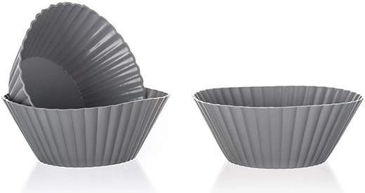 Set 6 silikonskih modelčkov za mafine blagovne znamke Allegra, vsebuje 3 sive in 3 kremne modelčke dimenzij 7,5 x 3 cm. Pečeno testo zlahka odstranite in modelčki so večkrat uporabni, kar je prijazno do okolja.